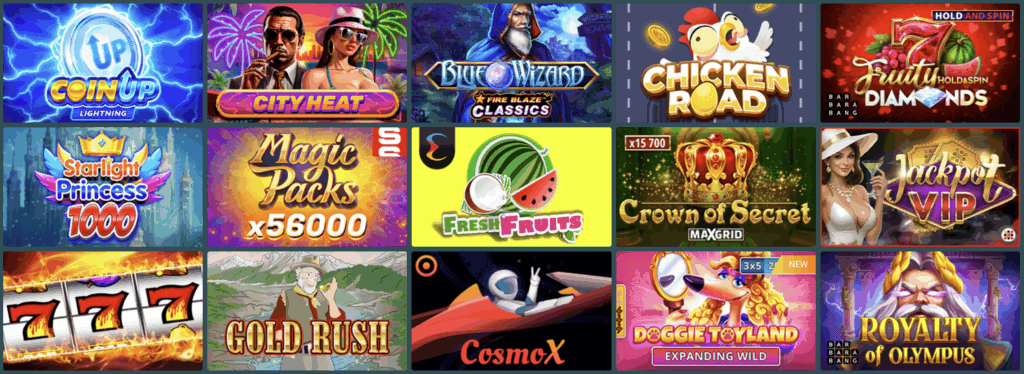 Več kot 6.000 iger v ponudbi vključuje širok nabor slotov, namiznih iger ter iger v živo z delivci. Med kategorijami izstopajo tudi crash igre, priljubljene Drops & Wins igre, jackpot sloti, casino igre s kaskadnimi simboli ter loto igre.