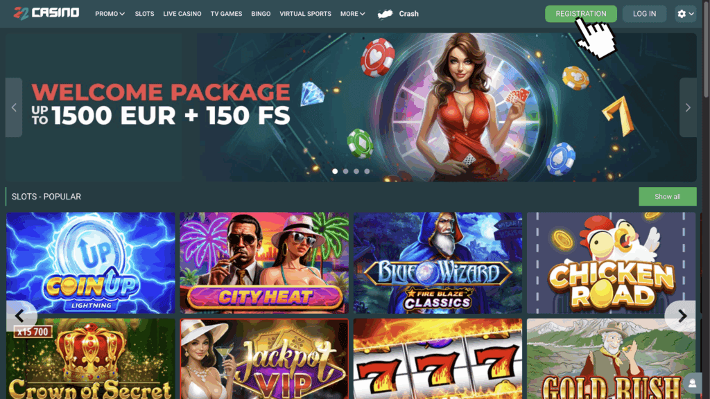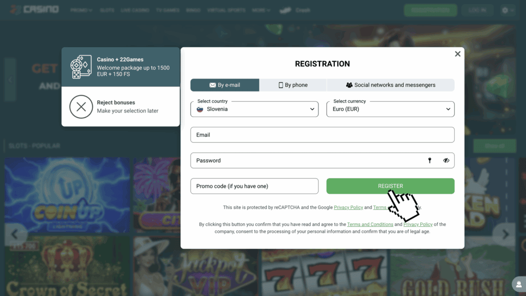Registracija v 22Casino je preprost postopek, ki poteka v 4 korakih.