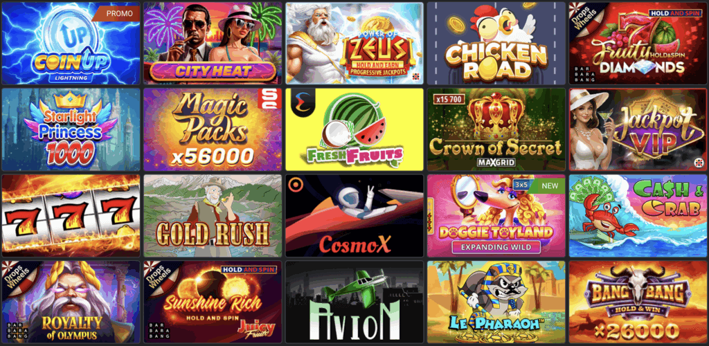 Registrirani uporabniki imajo dostop do več kot 4.000 naslovov od več kot 100 ponudnikov, vključno s Pragmatic Play, KA Gaming, Spinomenal, NetEnt in Quickspin. Številne casino igre brezplačno so na voljo v demo načinu, kar omogoča igranje brez tveganja.