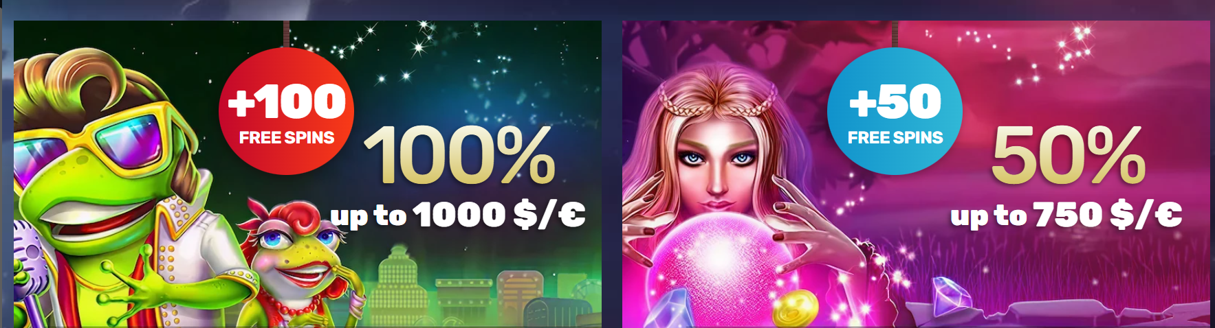 Z minimalnim pologom 20 € vas pri prvem nakazilu čaka 100 % bonus in kar 100 brezplačnih vrtljajev za priljubljeno igro Elvis Frog in Vegas – prejeli boste po 20 vrtljajev na dan. Ob drugem pologu vas čakajo dodatni brezplačni vrtljaji na igro Lady Wolf Moon.